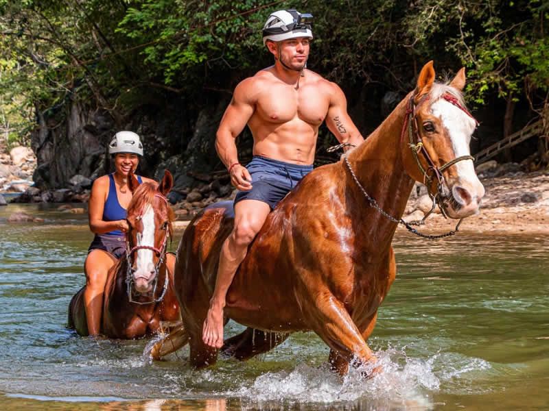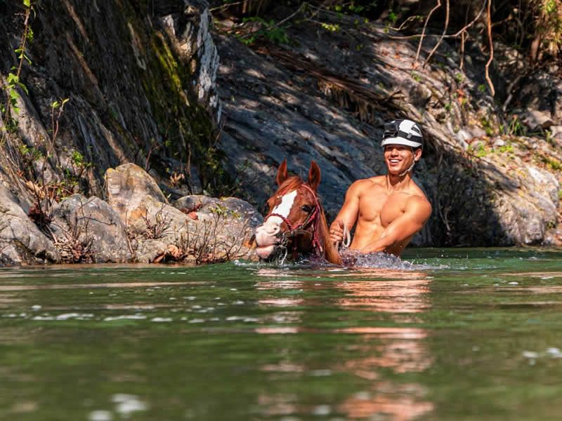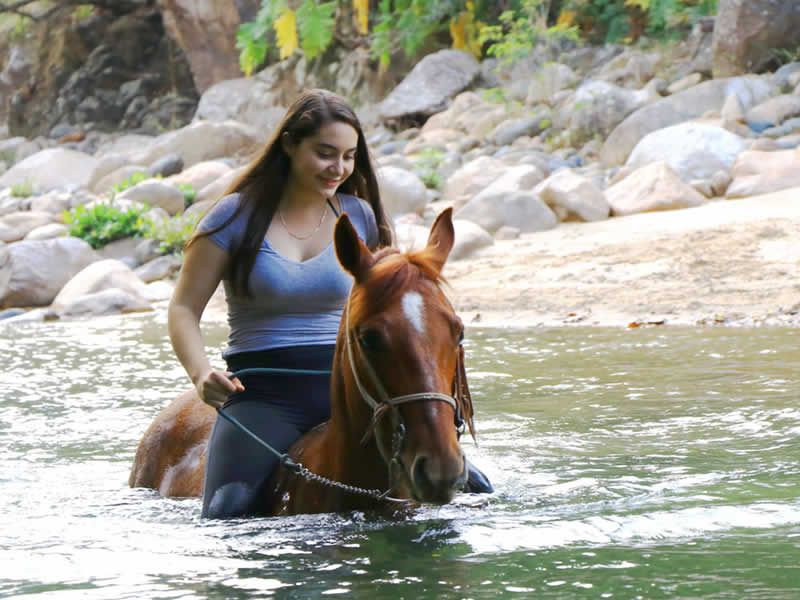 Lo mejor del tour es que podrás vivir la experiencia de nadar en el río mientras montas a caballo en las hermosas y distinguidas aguas cristalinas del río Cuale.